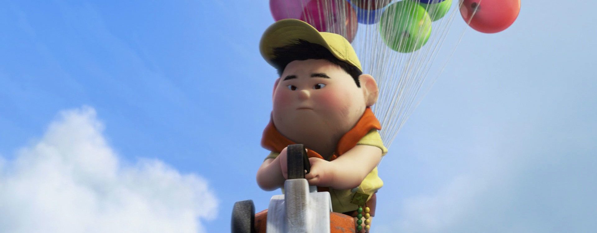 La suite du film est l’histoire d’un deuil. Mais vu par les joyeux allumés de la maison Pixar, celui-ci a tous les attributs d’une fête. Parti pour offrir à Ellie, post mortem, le voyage dont elle a toujours rêvé, Carl se retrouve, à son corps défendant, accompagné d’un boy-scout obèse, gentil et un peu bêta, Russel de son prénom, obsédé par l’idée de faire une bonne action en prêtant main-forte à une personne âgée. Leur aventure prend l’allure d’un parcours initiatique au long duquel le vieil acariâtre s’attache peu à peu à cet enfant finalement moins idiot qu’il n’y paraît, jusqu’à l’adopter.