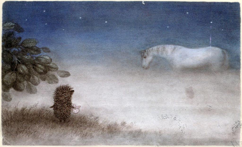 Comme tous les soirs, le petit hérisson s’en va chez son ami l’ourson pour lui apporter un pot de confiture de framboise et compter les étoiles avec lui autour d’un thé. Mais ce soir-là, il doit faire face à un épais brouillard d’où émerge un étrange cheval blanc. Une fois plongé au cœur de la brume, le timide animal se perdra et découvrira un monde où tout semble aussi fascinant qu’effrayant.