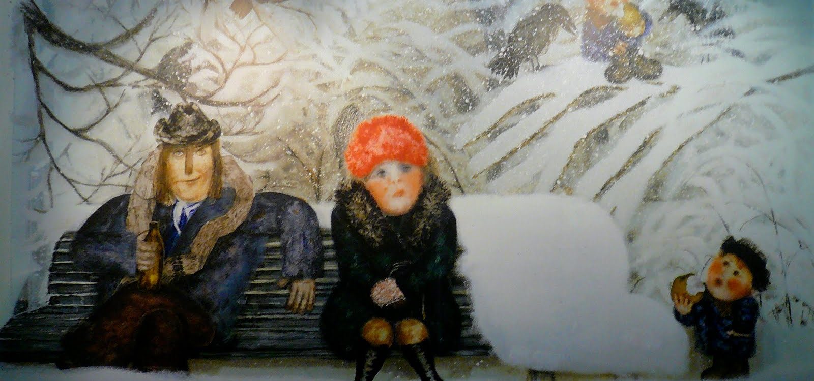 « Il m’habitait, ce film, bien avant que ne me vienne l’idée de me lancer dans la mise en scène. J’ai chez moi une étude, une étude peinte. Je ne sais plus de quelle année elle date : quand je terminais les Beaux- Arts ou juste après, alors que je travaillais déjà au studio. Mais cette étude – des corbeaux perchés dans un arbre enneigé – c’est « Le Conte des contes ». Une autre étude aussi, qui remonte à mon enfance : la mère Varia, Varvara Nikititchna Timokhina, notre voisine à Marina Rochtcha, c’est également «Le Conte des contes ». Mais ce n’est pas là que tout a commencé. Ni même avec la berceuse.