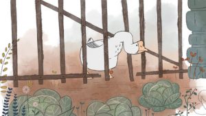 Une oie blanche, enfermée depuis toujours, découvre la liberté. Comme une seconde naissance.