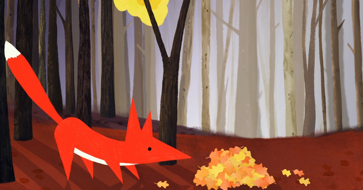 C’est l’automne. Oiseaux et écureuil s’occupent de leurs provisions. Mais un renard les guète…