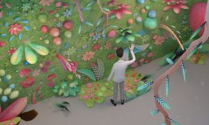 Un botaniste donne des cours en amphi et s’ennuie profondément. De retour chez lui, par mégarde, il renverse une tasse de café et cela l’inspire à peindre sur son grand mur blanc.