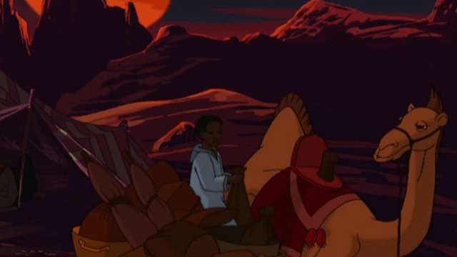 L’œil de l’enfant reflète à son tour son histoire : il s’appelle Afrique, et a perdu sa mère encore enfant au cours d’une nuit de fusillade où elle l’a confié in extremis au marchand Toa et à son dromadaire Casseroles. Afrique parcourt tour à tour l’Afrique jaune, puis l’Afrique grise, où Toa le vend au Roi des Chèvres, pour le compte duquel il devient berger ; il rencontre Guépard et Hyène, et tente de les apprivoiser, mais semble être trahi par eux, et se retrouve enfin dans l’Afrique verte, où il rencontre Mama (M’ma) et Papa (P’pa) Bia, qui l’adoptent. Chassée par la déforestation, la famille doit s’exiler vers l’Europe et s’installer en ville, où Papa Bia devient gardien dans un zoo. Afrique y retrouve ses anciens amis animaux, et y fait la connaissance du loup. L’œil du loup est guéri depuis longtemps, mais il refuse de le rouvrir, convaincu que le monde ne vaut pas la peine qu’on le regarde avec les deux yeux ; mais l’enfant finit par le convaincre du contraire.