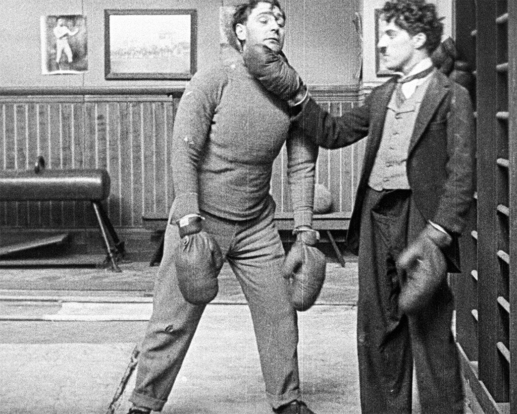 À bout de ressources, Charlot accepte de servir d’adversaire pour l’entraînement d’un boxeur. Usant d’un peu d’astuces, il va montrer des talents insoupçonnés pour la boxe et devra participer à un combat public… Charlot boxeur est le troisième film de Chaplin tourné pour Essanay. Il se révèle être d’un niveau bien supérieur aux précédents. Tout d’abord, on notera les scènes d’introduction qui préfigurent nettement le personnage du Chaplin vagabond et qui donne de l’épaisseur à son personnage : ce n’est plus un simple trublion mais un pauvre hère prêt à accepter les pires situations pour survivre. Les scènes d’entrainement qui suivent sont assez amusantes, avec un humour et des coups bien dosés, sur un rythme plus posé que précédemment. Certains gags sont vraiment de tout premier ordre et le clou du film reste le combat final. Chaplin y montre non seulement des qualités sportives certaines, mais surtout une belle inventivité dans l’humour.