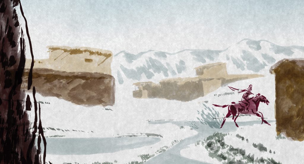 Avec La jeune fille sans mains, le cinéaste fait appel aux sens et à l’imagination du spectateur en faisant parfois apparaître par éclairs et fragments de peinture, personnages et décors, au milieu de magnifiques tableaux. Comme Norman McLaren en son temps avec Blinkity Blank, que vous avez pu voir il y a deux semaines, et d’autres de ses courts métrages, Sébastien Laudenbach fait participer le spectateur à la création de son film et montre bien en quoi l’animation reproduit la vie, se confond à elle. Ainsi, les apparitions et les disparitions successives des traits de la jeune fille évoquent par moments avec un grand réalisme les battements de son cœur.