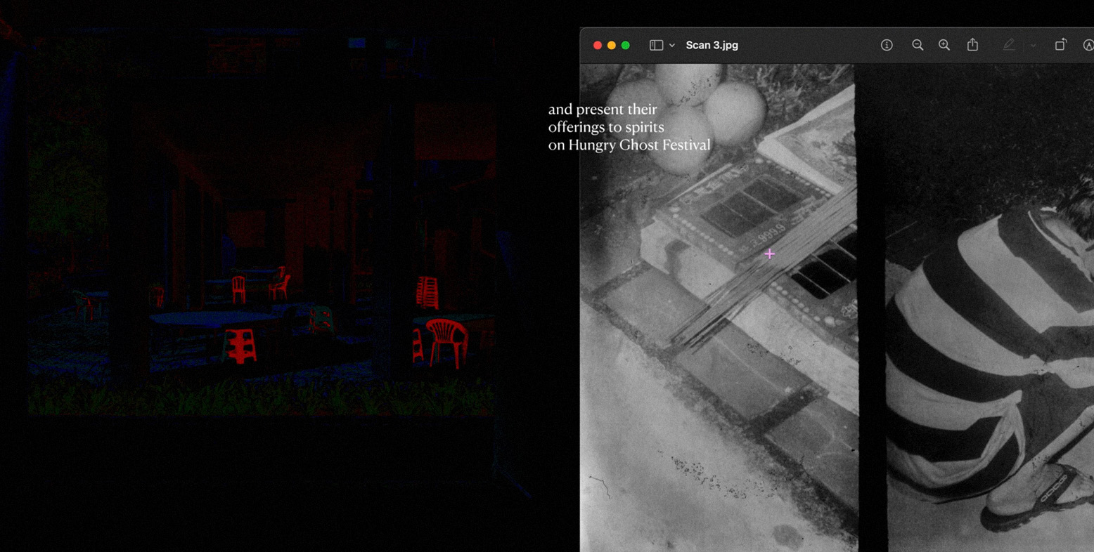 À la croisée des domaines de l’architecture, de la technologie et de la spiritualité, « Espaces as traces » présente des images trouvées, les archives de Teo consacrées à l’architecture singapourienne et aux rituels religieux taoïstes, ainsi que des animations tridimensionnelles de divinités dans une science-fiction imaginaire de la mythologie chinoise. Le film alterne fiction et documents d’archives, entrelaçant chronologies, récits et espaces. S’ouvrant sur une série de photographies des logements sociaux de Singapour prises par Teo, « Espaces as traces » offre un aperçu du paysage culturel des espaces communs singapouriens. Divers événements se déroulent dans ces espaces communs, appelés « spaces vides ». Le film propose ensuite une science-fiction imaginaire de Bai Suzhen, une divinité serpent qui descend dans le monde des mortels mille ans plus tard. On y découvre Yang, la gardienne de la maison de Bai, et la perspective désincarnée d’un système de vidéosurveillance dans l’espace de la maison de Bai. Yang nous guide à travers les structures architecturales du HDB, nous présentant les archives de la communauté fictive, conservées sans interruption depuis mille ans. Avec Bai, Yang et des médiums spirituels documentés, la fiction et la documentation rituelle archivistique permettent à l’espace du HDB de méditer la relation complexe entre l’intelligence artificielle et le Livre des Mutations taoïste, ou Yi King. Ici, les symboles divinatoires hexagrammes du Yi King correspondent aux éléments architecturaux du bâtiment du HDB. Dans « Espaces comme traces », Teo s’intéresse aux intersections entre médias numériques et êtres spirituels, utilisant le cinéma comme médiation de nos relations et de nos interactions avec le cyberespace, l’espace physique et les mondes spirituels. C’est une performance illustrant la manière dont ces mondes spirituels et ces espaces à seuils peuvent interagir. Le langage spirituel devient langage numérique.