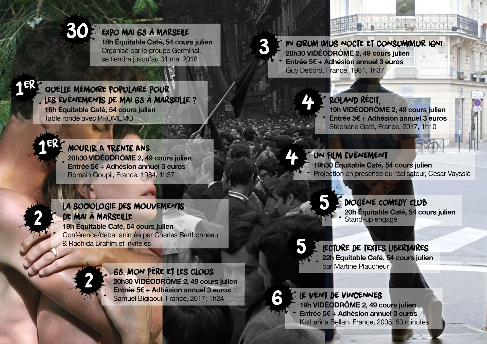 Mais le passé ne passe pas. Il demeure question, présent des questions qu’il nous pose. Quelques films pour poser des questions : comment est passé mai 68 sur certains? Sur Guy Debord, In girum imus nocte et consumimur igni, sur Michel Recanati, Mourir à trente ans, sur Paris 8, Le vent de Vincennes, sur Roland, dans Roland récit, sur Jean Bigiaoui, dans 68, mon père et les clous.