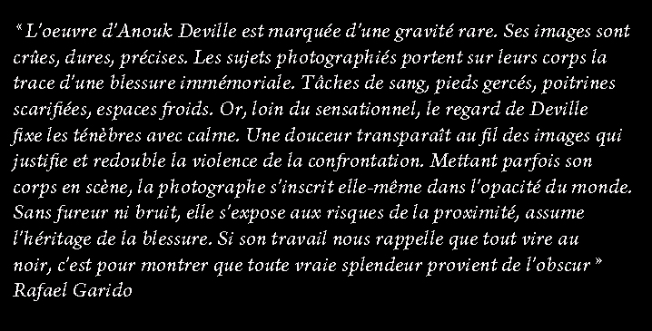 Elle se livre sans limite dans ce travail que l’on peut qualifier de “photo-thérapie”. Son écriture photographique est représentative d’une nouvelle génération de photographes, où tous les moyens sont bons pour s’exprimer en images (iPhone, captures d’écran…).