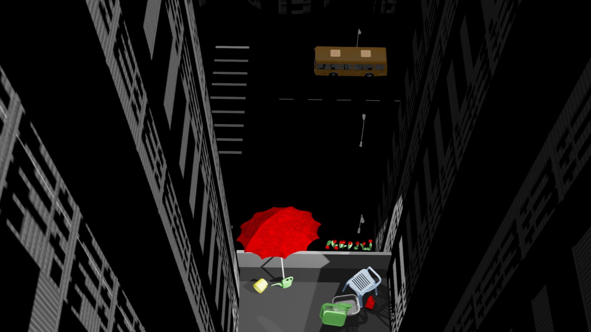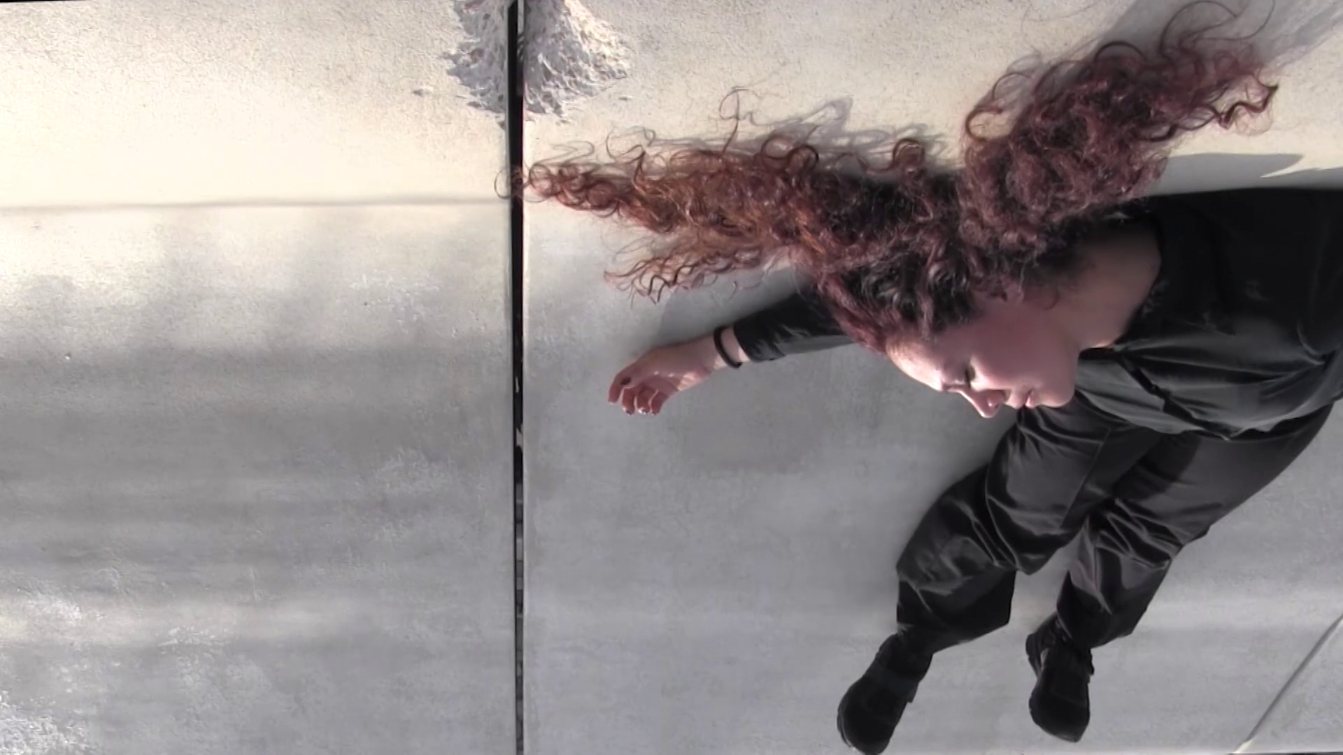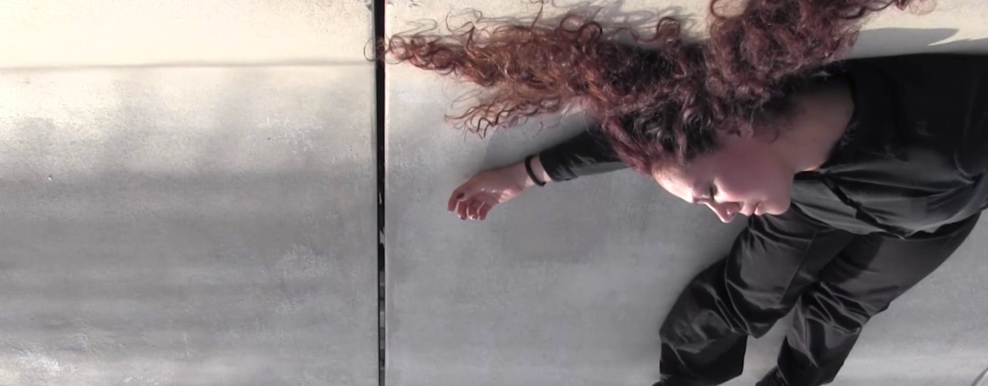 Elle observe des fissures et des reflets comme si elle cherchait un passage de l’autre coté. Le mouvement du corps se confronte aux éléments de la ville, les questionne et les détourne. Le corps défie la gravité puis se déplace au milieu subaquatique où tous les repères disparaissent. Perdu ou libre, on ne sait plus si la personne cherche à retrouver la surface ou à aller vers des profondeurs.