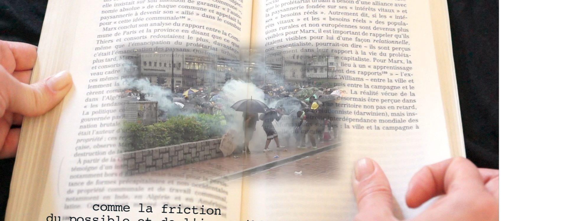 Nous resterons sauvages c’est à dire libre et révolté. Cette vidéo, construite à partir du livre de Kristin Ross « L’imaginaire de la commune » est un livre image. Les pages tournent, on peut en lire des bribes, tout en regardant ces images qui mangent une partie du texte, l’effacement est là pour créer le désir. Les images et le texte montrent des contestations, des paysages expérimentaux, des danses frénétiques. Sur une musique du groupe Jean-Louis.