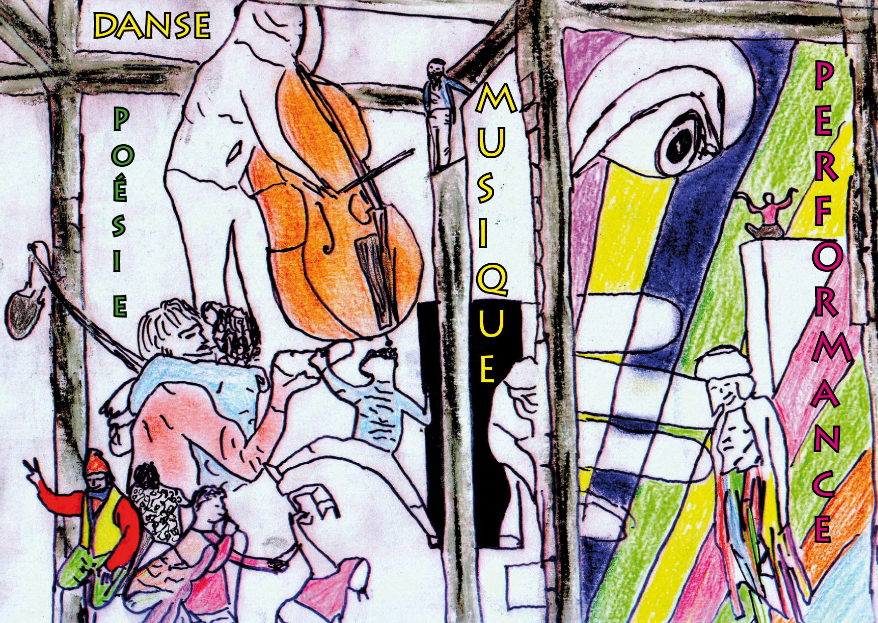 Danse, musique, noise, performance, poésie, vidéo, improvisation.