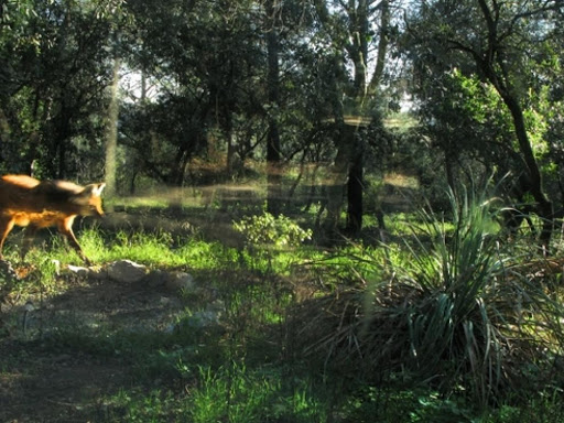 La brume déborde, les arbres se mollissent. A la surface le paysage se dégonfle tandis que du fond du bois, la bête me regarde.