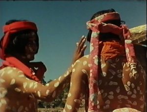 « Ce film a été tourné l’été 1979. Il répète le rite du Tutuguri que Tranquilino, le saweame a chanté et dansé six fois, dans un temps bref, rigoureusement précis (1 minute 45 secondes). Paroles secrètes dont seules émergent les voyelles, la danse construit un espace sacré entre les quatre points cardinaux d’une croix, signe noir et païen. Rite solaire et natif, antérieur à la conquête espagnole.