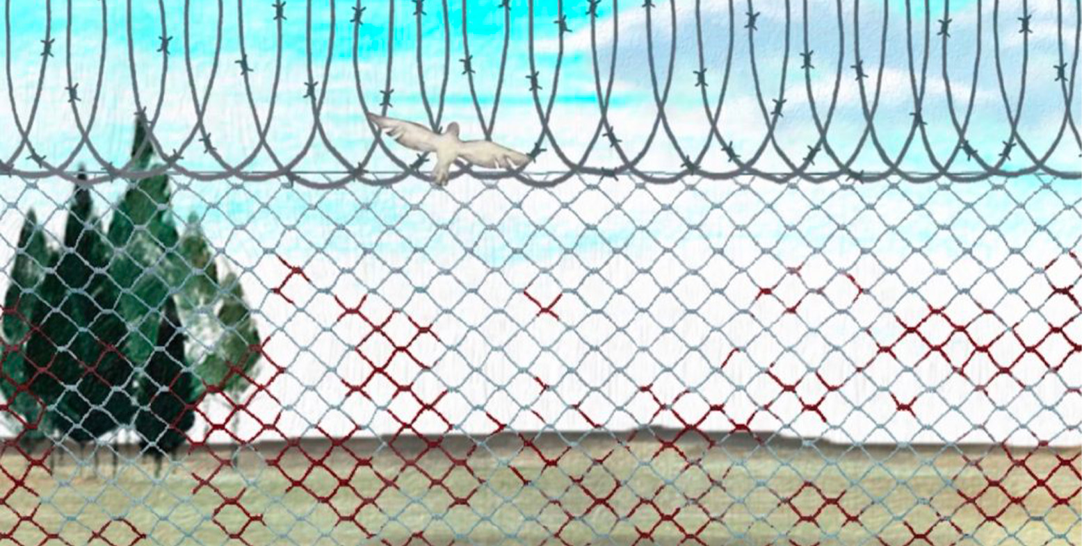L’histoire d’un oiseau qui lutte pour franchir une clôture qui lui barre la route.
