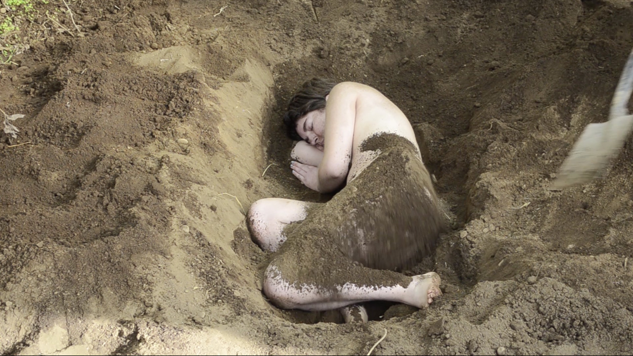 Cette œuvre fait partie du triptyque « La creación » exposé dans le cadre de l’exposition « Canción Nacional » à la Fundación Plagio. Sous la phrase de l’hymne « L’heureuse copie d’Eden », on accuse le lien toujours existant entre l’État et la religion, cette dernière étant un élément furtif dans le processus d’acculturation des premières nations. Cette hégémonie se manifeste dans la narration de la création de la Genèse par ma grand-mère María Melivilú, qui, comme beaucoup de personnes d’origine mapuche, a incorporé ce récit chrétien dans son imaginaire. Des concepts tels que la subordination des femmes aux hommes et les conséquences de la désobéissance apparaissent dans le récit. L’histoire accompagne l’enregistrement d’une action réalisée à Temuco, le corps de l’artiste enterré sous la terre, complètement recouvert, et sa respiration faisant bouger le sol où l’on voyait le corps, maintenant caché. La vidéo est inversée et l’enterrement est défait, laissant le corps à nouveau découvert, faisant référence à la « découverte » mal nommée par les Espagnols.