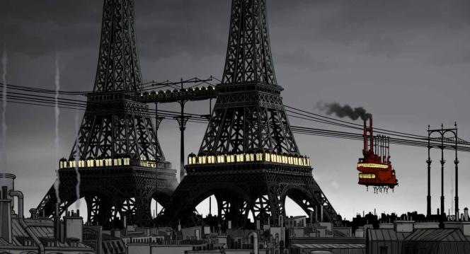 Avril et le monde truqué, est un grand film d’aventures ! Il ne manque aucun ingrédient : action, amour, humour, suspense, trouvailles visuelles permanentes, dialogues excellents et enlevés, rythme trépidant. C’est d’abord un univers visuel d’une richesse inouïe ; celui de Jacques Tardi. On y retrouve son amour pour un Paris industriel, pour le début du XXe siècle, pour les machines et les inventions technologiques les plus délirantes, à la Jules Verne. Le trait, les formes, les couleurs rabattues, sont ceux de Tardi. Histoire de savants fous, histoire d’amour et de famille, aventures dans un Paris obscur, c’est comme si l’on était plongé dans une de ses bandes dessinées, sauf que ça n’en n’est pas une. Le scénario est enlevé, intelligent et drôle, bourré de trouvailles et de détails désopilants. On suit de manière haletante les aventures d’Avril et de son chat parlant Darwin (l’inimitable voix de Philippe Katerine lui donne une profondeur et un humour incroyable). Le récit nous embarque où l’on ne sait jamais. Quel bonheur cette sensation de surprise permanente ! Le fond de l’histoire livre une réflexion sur le progrès scientifique et la manière dont les hommes le dévoient, la situation écologique et la place de la nature, mais le ton est avant tout celui d’une pensée libre qui met l’humour au cœur de son propos. C’est une uchronie tendre et délirante, un délice de cinéma !