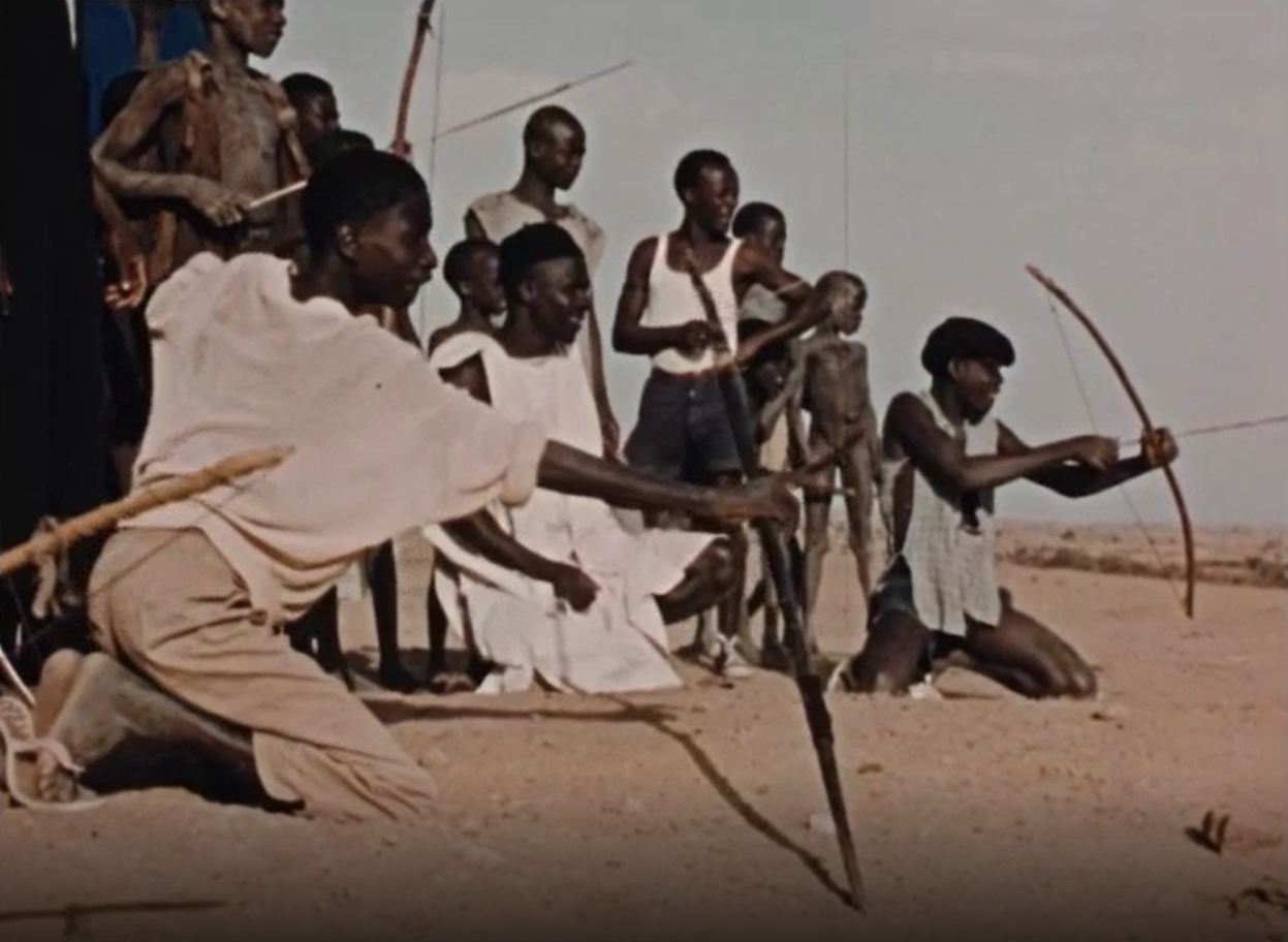 À la frontière du Niger, du Mali et de la Haute-Volta (Burkina Faso), vivent les derniers Gow, les derniers chasseurs de lion à l’arc. C’est le « pays de nulle part », la brousse qui est plus loin que loin, au-delà des villages sédentaires, où, autour de mares incertaines nomadisent les grands bergers Peuls ou Bella. Les boeufs et les lions vivent en contact étrange : les meilleurs pâturages sont justement les brousses à lion, où chaque nuit les fauves disputent aux troupeaux la capture des bêtes les plus faibles. Sélection naturelle qu’un lion bouscule parfois en tuant pour le plaisir de tuer. Alors les bergers font appel aux chasseurs Gow.