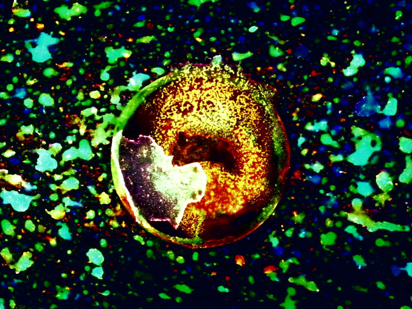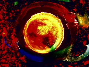 Vision imaginaire d’un monde cosmique en perpétuelle mutation suggérant le drame cosmogonique de l’univers. « C’est le langage du cinéma qui, articulé par ce peintre, nous fait découvrir une dimension de l’espace (macro-microscopique) en cadrant, depuis la seule mise au point possible, l’être du temps, le mouvement essentiel. Un thème passionnant. Un film. » Santos Amestoy « Les couleurs ne surgissent pas au hasard mais élaborent une logique de la dynamique, continuel mouvement de la matière-énergie. » Calra Janes « Avec lui, la peinture trouve le mouvement. Ses tableaux bougent. Ils sont cinéma (…). Dieu, ou un créateur à son niveau semble vivre en cette oeuvre édifiée sur le temps. » Mariano Sanchez