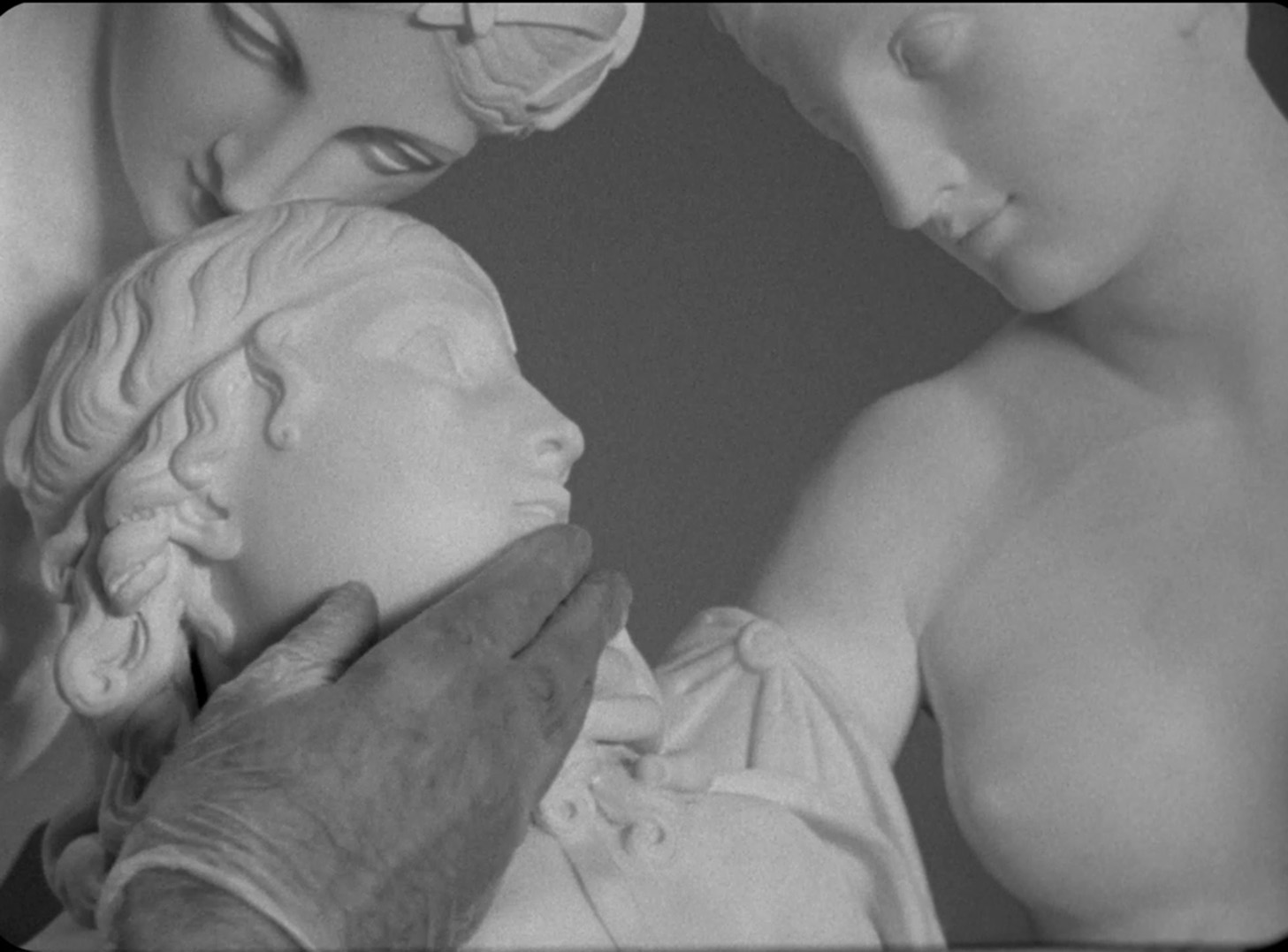 Un homme aveugle aux mains interrogatrices explore une sculpture Victorienne.