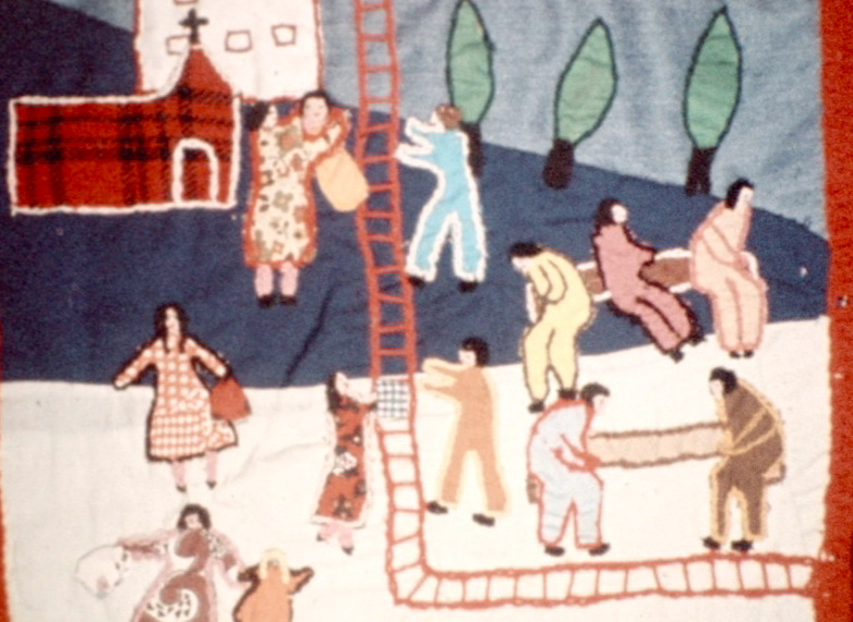 Chaque thème évoqué dans la lettre – qui sont autant de moments de la vie quotidienne sous la dictature (la vie au camp, les arrestations, l’entraide et la solidarité, les difficultés pour se nourrir, le chômage, l’espoir, l’école, les enfants, les luttes, etc.) – est illustrée par une ou plusieurs arpilleras, ces tableaux de textile cousus à la main par ces femmes chiliennes. Cette forme d’expression permettait aux femmes, compagnes de prisonniers politiques, d’exprimer leurs craintes et angoisses mais également leur espoir. Dénonçant les violences du régime autoritaire chilien, ces tapisseries-broderies témoignent également de la résistance à toute épreuve de ces femmes.