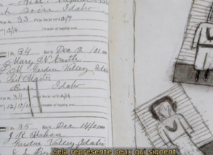 « Le travail de James Castle m’a fascinée depuis que je l’ai découvert sur catalogue en 2002 pour les raisons suivantes : il est sourd et je connais bien cette génération de sourds ayant été élevée en langue des signes par des grands-parents sourds, nés à la même époque. Comme tous les plasticiens sourds à qui j’ai consacré des films, le photographe japonais Koji Inoue et Pierre Avezard, artiste français d’art brut, il utilise des thématiques et des formes d’expression propre aux sourds. Comme eux il a été reconnu à la fin de sa vie et ses œuvres sont dans les musées. À travers son œuvre, on peut définir un véritable lexique de toutes les tendances propre à l’art des Sourds. Comme il est resté relativement isolé du reste de la communauté Sourde et du monde de l’art, il a été capable d’exprimer une création « authentiquement visuelle ». Il n’a pas essayé de plaire à sa communauté, de la valoriser ou de gagner de l’argent. Dans sa recherche esthétique il a traduit ses ressentis et sa philosophie de la vie en images. Pour les Sourds du 19ème siècle, le silence était un privilège grâce à la langue des signes. Ils étaient fiers d’être sourds et muets. Davantage encore quand la langue des signes a été interdite au niveau international en 1880 au Congrès de Milan. Beaucoup de revues et d’associations revendiquaient d’être « silencieuses ». »
