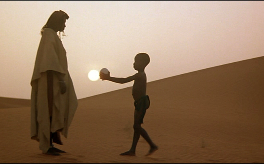 Le film démarre vraisemblablement par un flash-forward. L’enfant qui vient porter la chèvre devant la statue de Niankoro est probablement son fils, celui que l’on retrouve à la fin, s’en allant seul et fragile dans un pays promis à l’esclavage. Cette fragilité est due à la dureté des pères qui n’ont pas su transmettre leurs pouvoirs à leur fils, les aveuglant, tels Djigui dès qu’ils souhaitent acquérir la connaissance. Souma se montre plus cruel encore envers son fils.