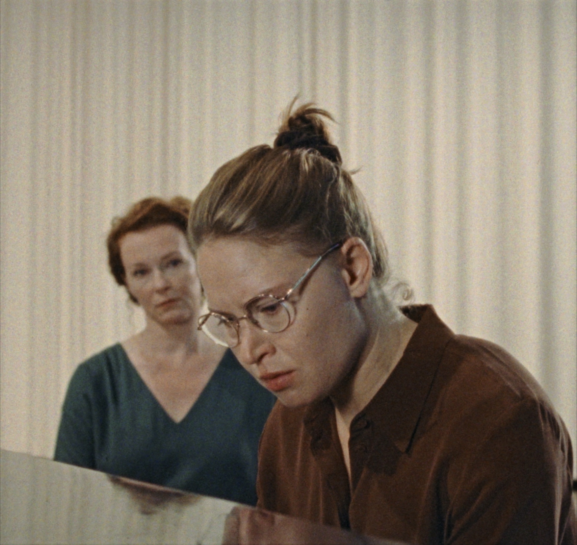 Une femme, sous le regard d’une autre, commence le Prélude Op. 28 No. 2 de Chopin : la référence est claire, Jenni Toikka retravaille Sonate d’Automne d’Ingmar Bergman. Un mouvement de caméra vient recadrer la pianiste tandis que la musique devient un son intérieur. Le cadre se resserre encore et la pianiste est devenue spectatrice, auditrice : première de plusieurs permutations qui voient se brouiller l’espace et s’intervertir les positions. Le film s’enroule sur lui-même et recommence. De dédoublement en diffraction, une infinité de reflets en huit minutes. (Nathan Letoré)
