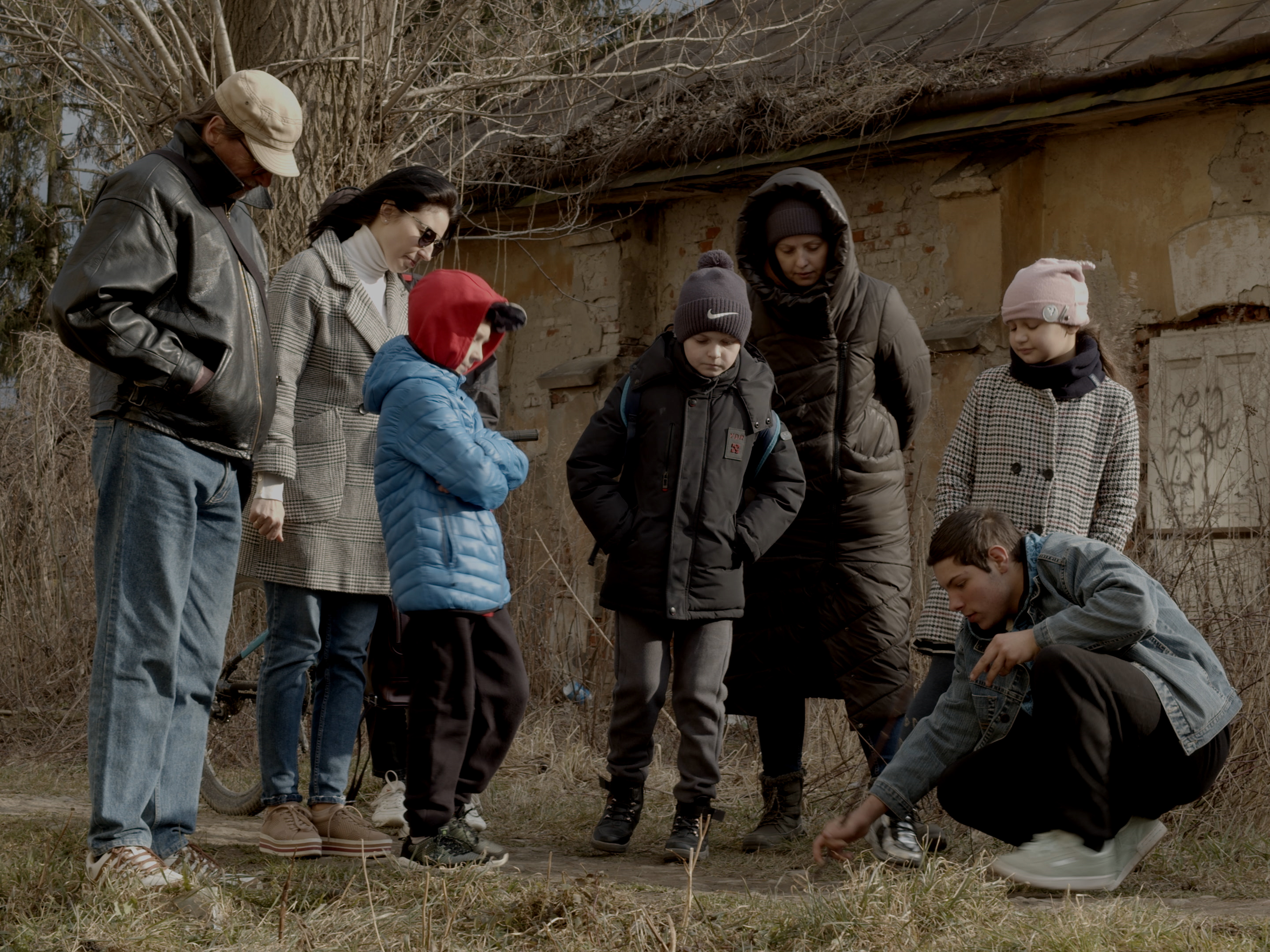 L’artiste originaire de Kyiv Dana Kavelina (née en 1995) oscille entre livres, illustrations, animations, tableaux, graphismes et vidéos pour traiter de la violence militaire et des traumatismes individuels et collectifs, le tout à travers un prisme féministe/de genre. Ici elle s’appuie sur une œuvre-fleuve existante, To watch the war (2018), documentaire found footage en ligne de cinq heures, et façonne une miniature délicieusement surréaliste, qui traite d’un sujet des plus sensibles avec légèreté. Des vidéos amateur tournées lors du conflit du Donbass sont reconfigurées à des fins anti-guerre et combinées avec les poèmes, animations et tableaux vivants de Dana Kavelina, ainsi qu’avec des images d’archive des années 1930 staliniennes. (N.Y.)