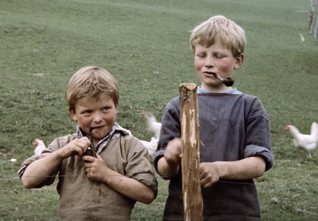 Il est nécessaire de filmer le travail comme une usure solaire, comme une gloire cruelle. Filmer les habitants qui portent la montagne comme un gilet, simplement, sans que ce soit la faute de personne. Filmer leurs mains usées par le rabotage, la traite et la corde lancée pour attraper les chevaux sauvages ; leurs mains usées par le labour, la moisson. Filmer leurs dos forts, rompus auprès des meules et des cercueils portés sur l’épaule. Filmer leurs rêves qui travaillent avec eux dans les nuits froides. Filmer les menaces qui hantent leurs lignées et pèsent — littéralement — sur le dos des fils, spectres ancestraux dessinant l’exigence d’une généalogie qui se perd, happée par le grondement sourd des villes. Il s’agit finalement de filmer ces pays qui disparaissent et que seul le cinéma peut retenir.