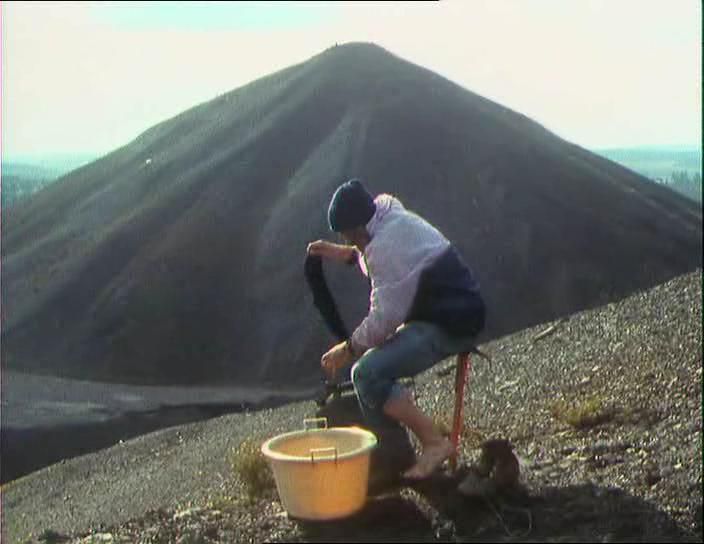 Le documentaire est pour Moullet le moyen de questionner radicalement et obsessionnellement nos actions les plus simples : aimer (« Anatomie d’un rapport« ), manger (« Genèse d’un repas« ), marcher (« La Cabale…« ), nager (« Ma première brasse« ), prendre le métro (« Barres« ), visiter (« Foix« ). Il nous fait rire en se mettant dans tous ces états (amant, mangeur, marcheur, nageur, voyageur, touriste), en donnant de sa voix, de sa personne pour désosser les évidences, explorer les lieux communs, arpenter les territoires oubliés. Dans « La Cabale des oursins« , Moullet sait à la fois être le plus terre à terre et prendre le plus de hauteur, littéralement, en grimpant en haut des terrils pour dénoncer l’indifférence qui les entoure.