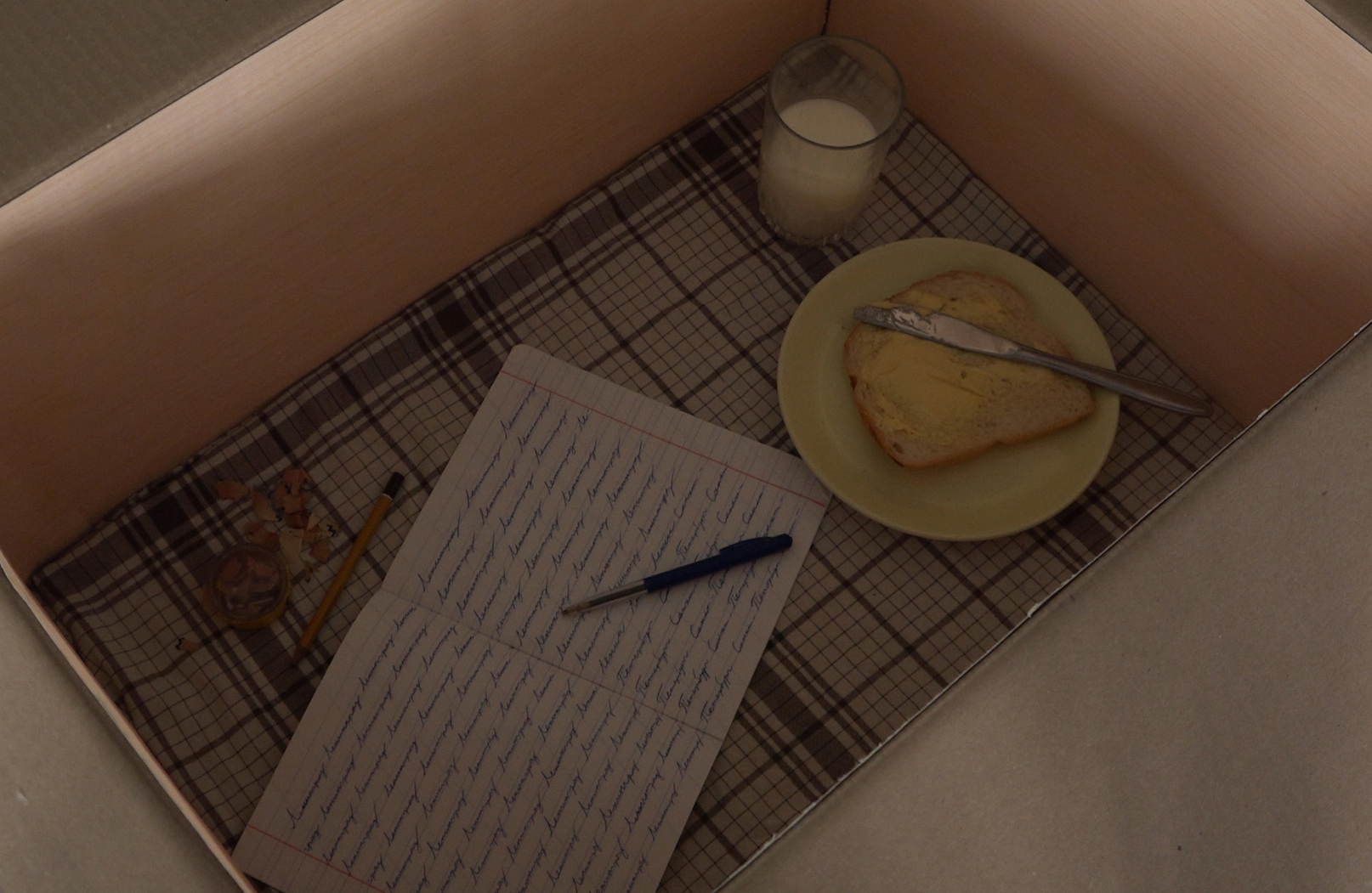 Dans ce film, son histoire est traduite en une exposition muséale fictive d’objets présentés dans des boîtes en carton, comme s’ils pouvaient s’éloigner à tout moment.
