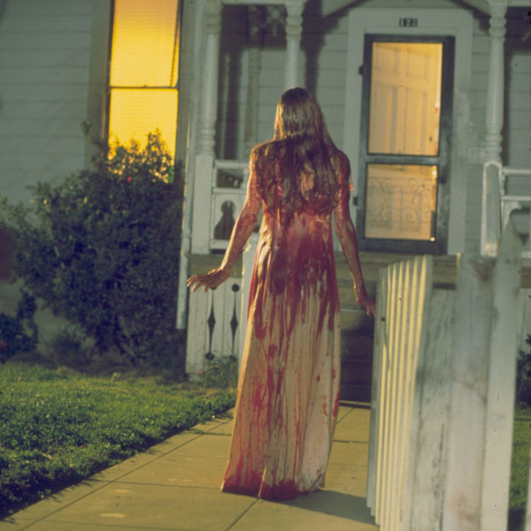 « La première fois que j’ai entendu parler de Carrie au bal du diable j’avais 11 ans, ma mère m’en avait parlé d’une façon que j’avais trouvé très mystérieuse, chose qu’elle savait beaucoup trop bien faire. Elle appuyait sur le fait que c’était un film qui l’avait marquée et qu’apparemment elle aimait, tout en ayant l’air affectée, et en ne finissant jamais ses phrases. Elle n’en avait rien dévoilé au final, je savais juste que c’était un film d’horreur et qu’il portait le nom d’une fille. Je demandais à le voir ce à quoi elle me répondit qu’il fallait que j’attende encore 2 ans. C’était suffisant pour que ce film m’obsède pendant les deux années d’attente méticuleuses qui suivirent. Au halloween de mes 13 ans, de manière très solennelle je décidais de réunir mes quelques copines pour regarder ce film autour duquel j’avais eu le temps de me créer tout un mythe sans aucune information. Fraichement téléchargé de Limewire, lumières éteintes, j’étais prêt·e pour le baptême des 13 ans.