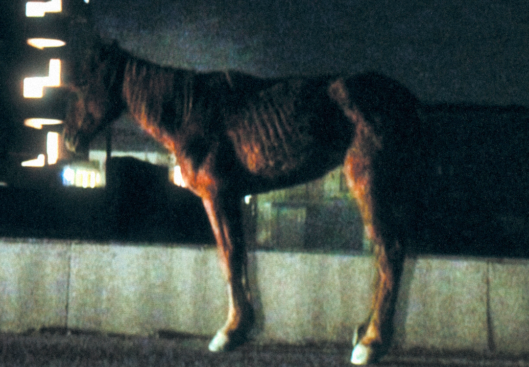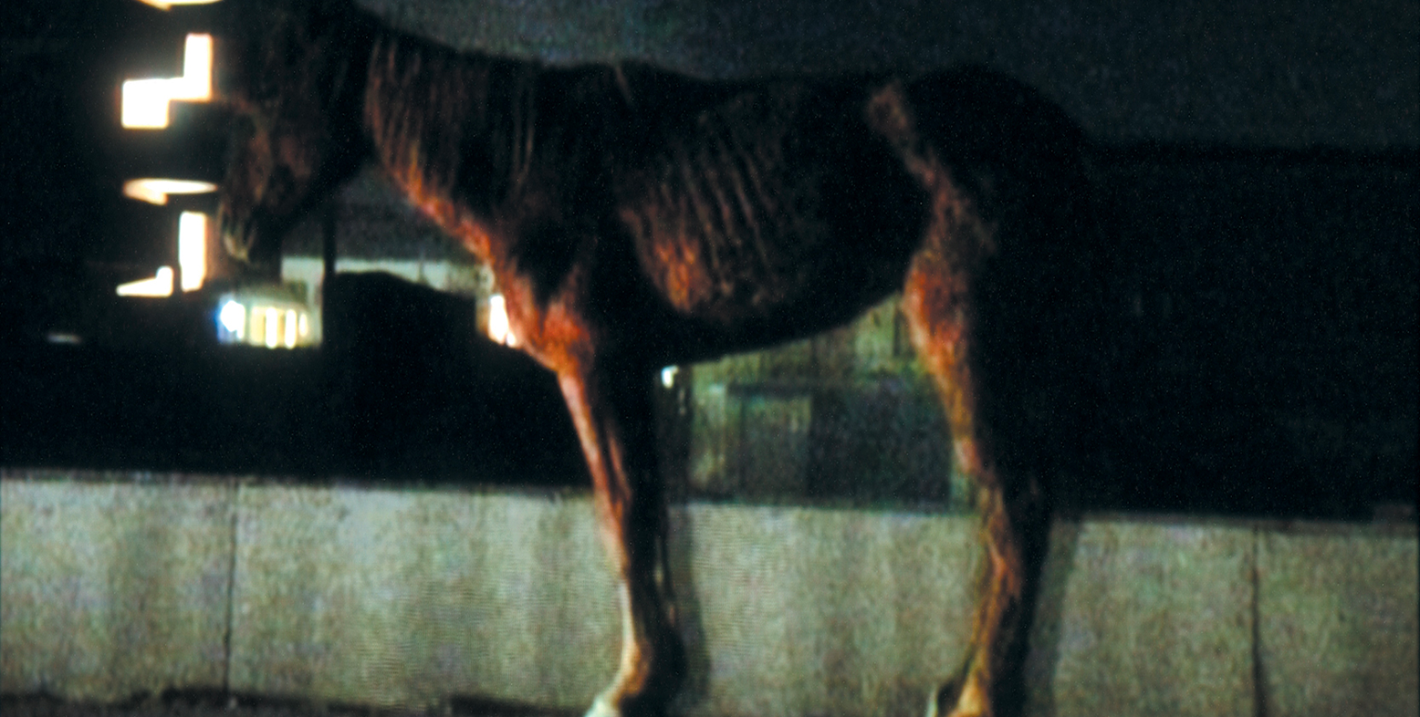 Un cheval émacié, fantomatique, figé sur la bande d’arrêt d’urgence d’une route périurbaine. Les éclats de lumière qui entourent la silhouette de l’animal sont la seule indication que le temps n’a pas été stoppé. Une forte tension se créée vis-à-vis de ce tableau vivant et vibrant, brisé par les passages de bruyants véhicules. Tourné dans la périphérie de Tirana, la ville natale d’Anri Sala, Time After Time semble habité par un état contradictoire, à la fois figé et pris dans la violence et l’agitation.