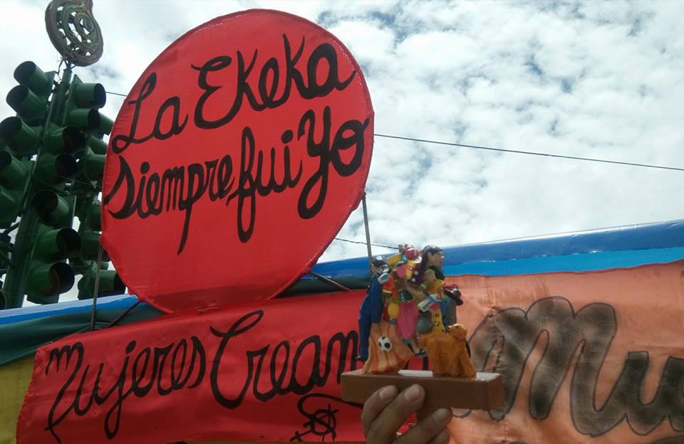 Le court métrage revendique la figure populaire de la « Ekeka », porteuse de chance, incarnée en la femme qui porte toujours sur son dos le bien-être des autres ; En même temps, il comprend une pratique de la justice issue du mouvement Mujeres Creando. Cette pratique de la justice est l’accompagnement quotidien des femmes qui décident de rompre avec une relation violente et au lieu de fuir les mains vides pour repartir à zéro, ce que fait le mouvement c’est d’accompagner les femmes pour emporter avec elles tout le fruit de leur travail.