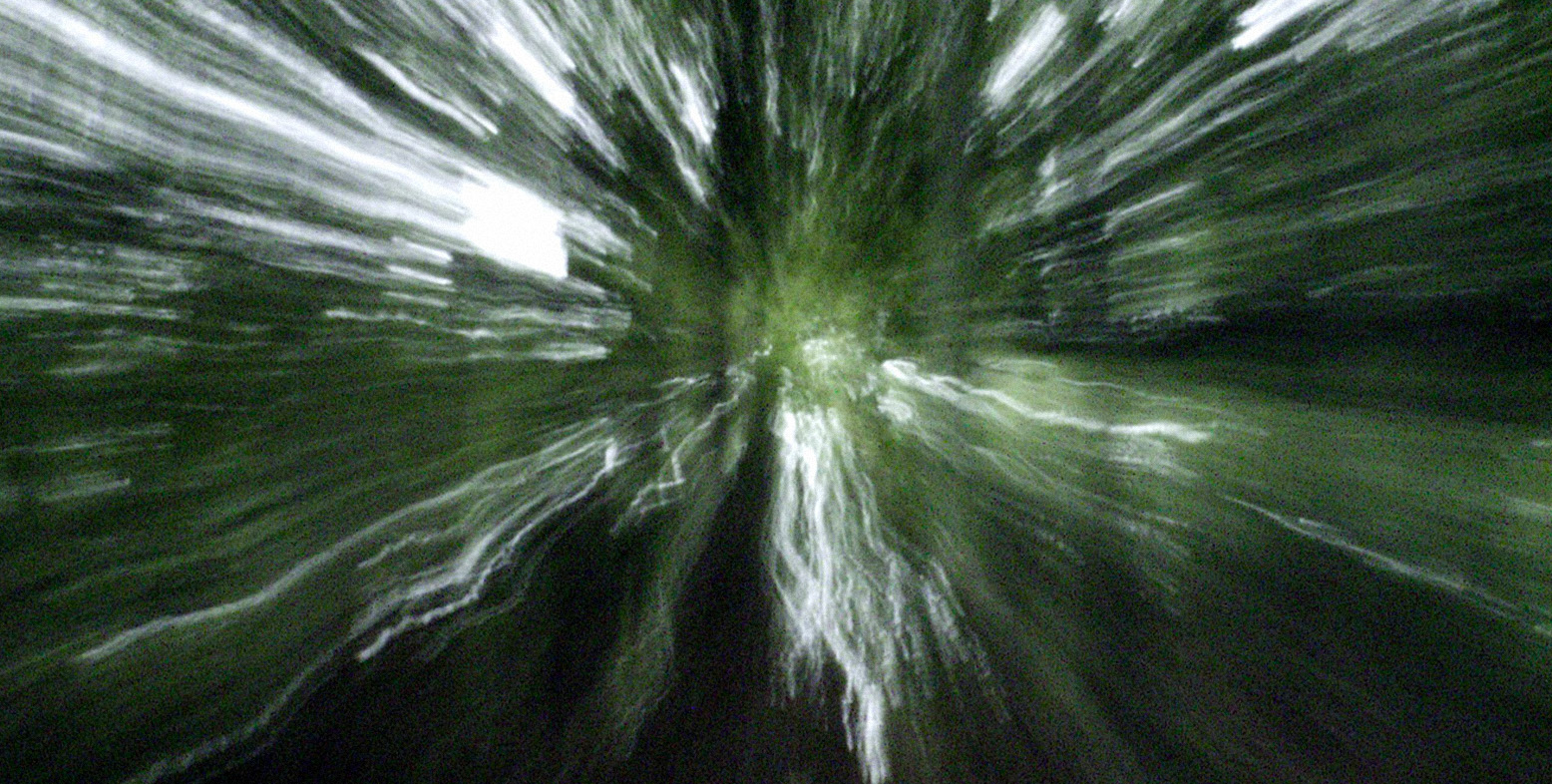 Ce qui est caché devient visible dans l’interaction de la nature et de la machine optique. L’image perverse d’un soleil artificiel créée par des jets de lumière à la fin de ce film n’est rien d’autre qu’un plan agité flou scrutant les profondeurs d’une forêt – toujours représentée avec un potentiel visuel. VERTIGO RUSH est une expérience techniquement extravagante consistant en plusieurs séries de zoom avant et arrière : une succession de mouvements caméra capturés en des images individuelles, en mouvements avant et arrière, tout en zoomant simultanément dans la direction opposée. En accélérant ce mouvement pendule, au début lentement puis de façon drastique, l’illusion d’optique de l’espace en mouvement s’accélère – et doucement se tourne vers l’abstrait, vers une image « dissolue. »