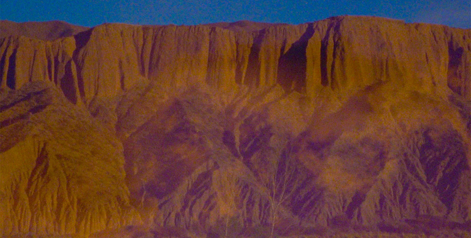 L’œil de la caméra plonge vers la terre dans le remarquable ThePeriphery of the Base, où Zhou Tao chorégraphie un zoom infiniment lent sur une vue rapprochée des ouvriers travaillant dans le désert de Gobi, à un demi-monde de distance. Les corps se transforment en poussière, en ciel, en vent, et nous nous rematérialisons avec eux, nous retrouvant dans et de la terre grâce à Altiplano de Malena Szlam, un film tourné dans les hautes et sèches altitudes entre le Chili et l’Argentine, où le désert est réel et la conscience est un mirage éblouissant et glorieux.