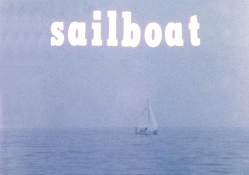 Sailboat a la simplicité d’un dessin d’enfant. Un voilier navigue éternellement sur l’eau comme un bateau en jouet, dans le ronflement des vaques qui paraît souligner l’image jusqu’à l’exagération, un peu comme un enfant qui dessinerait de l’eau, puis ajouterait des lettres pour traduire les sons et les rendre aussi présents que possible…