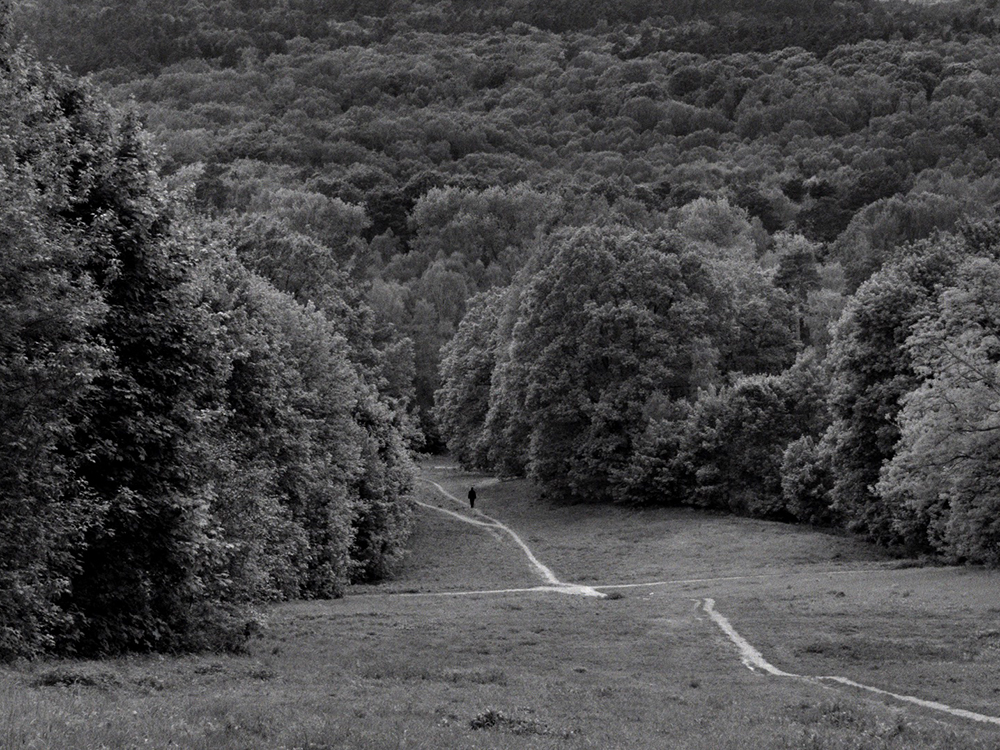 Filmée en noir et blanc, une nature est habitée par le bruit du vent. Dans ce murmure surgissent des notes de piano, et l’on aperçoit un homme qui marche, solitaire. Une possible fiction s’amorce. Voilà notre personnage qui s’enfonce dans la profondeur des bois pour surgir au sommet d’un arbre. Il y a là un pas que le cinéma ou le fantastique autorise. Mais la narration s’arrête là. De cette apparition énigmatique, on n’aura pas de clefs. (NF)