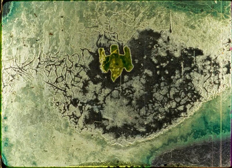 Un film 16mm exhumé de ma propre « décharge » dans l’Indiana constitue la toile de fond de ‘Landfill 16’. À la suite de ma double-projection ‘When It Was Blue’, j’étais terrifié par la quantité de chutes qui devaient normalement finir à la décharge. J’ai donc enterré temporairement la pellicule, pour laisser les enzymes du sol commencer à dégrader l’image, puis j’ai repeint le film à la main pour lui donner une nouvelle vie. J’essaie, dans ce film abstrait, d’exprimer mon inquiétude à l’égard du gaspillage humain. Ce « recyclage » est une méditation sur la vaine lutte de la nature pour décomposer les reliques de nos technologies et productions abandonnées.