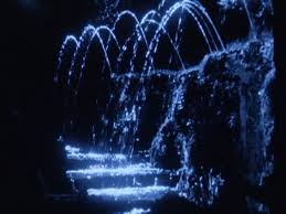 Le XVIIIe siècle est convoqué à travers la figure d’une femme qui déambule parmi l’eau des bosquets et les fontaines ornées de sculptures. Bleu et noir, l’image fascinante devient bientôt saturée. Les jets d’eau se transforment en une figure abstraite. L’eau est un spectacle, un artifice…