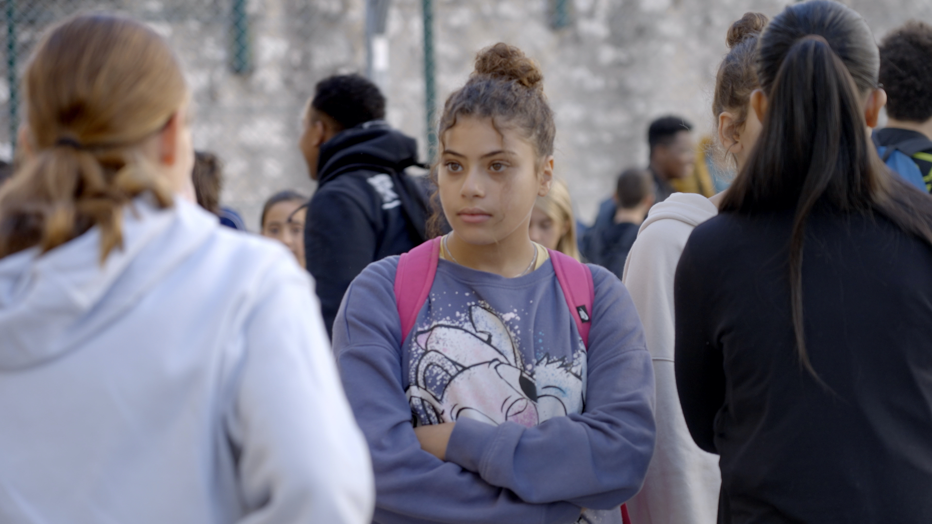 Dans la cour de récréation d’un collège, les groupes et les discussions se suivent. Chacun essaie de trouver sa place. Parmi eux, Ilyès et Kady nous racontent leur rapport aux autres et les pensées qui les traversent