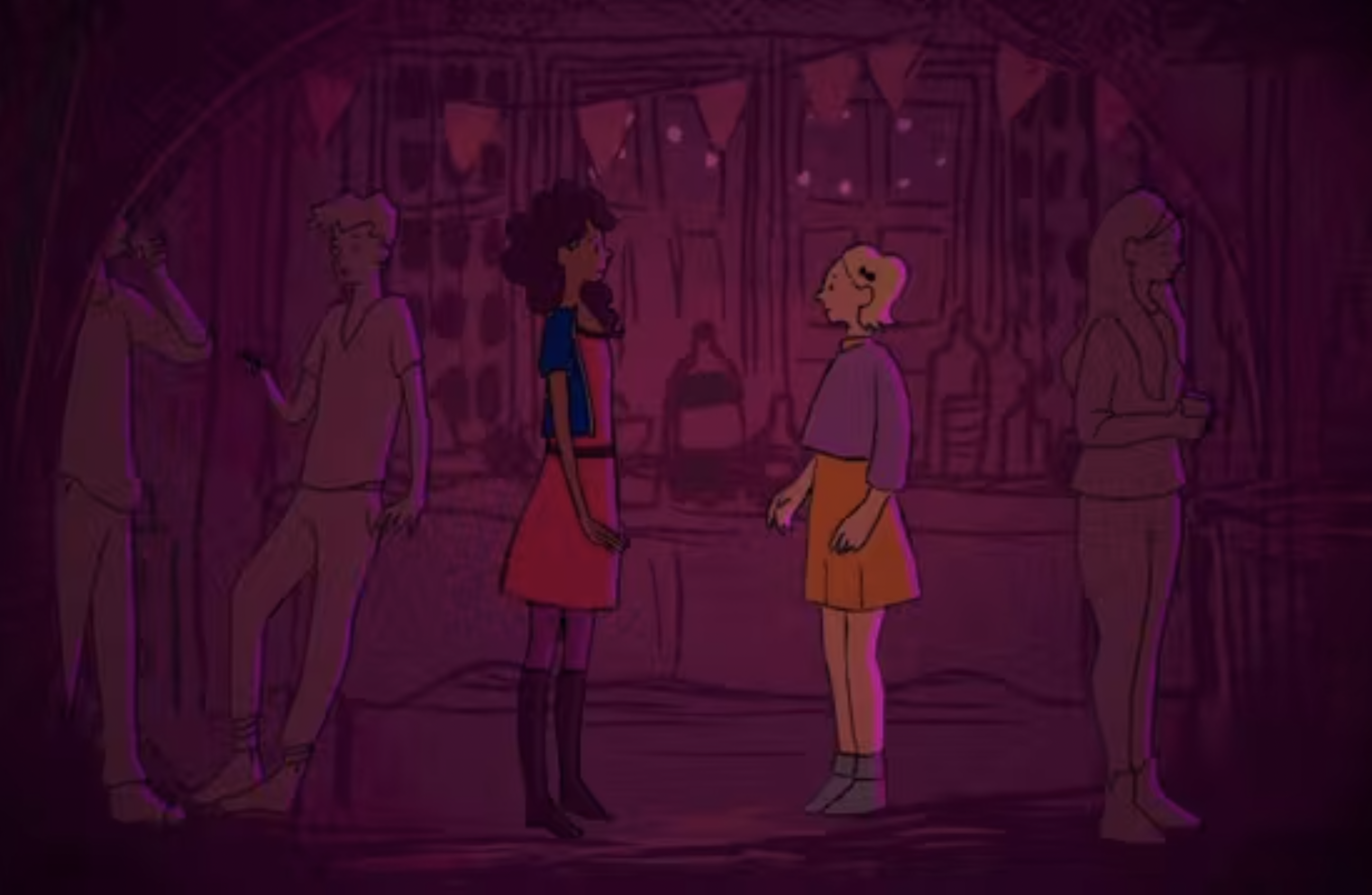 Lors d’une soirée, une fille trouve le courage de faire un pas vers son béguin.