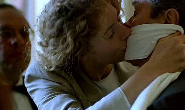 C’est élémentaire, ce qu’il y a dans ce film : il y a une femme qui renverse un homme en voiture. Ils se tendent la main. Ensuite, on voit deux ou trois choses. Et puis on voit l’homme qui tend la main et la femme ne la prend pas. Cinq minutes après on dit : l’hiver est passé, l’été était revenu. On dit ça d’une manière que certains amis appellent poétique. Et puis c’est l’inverse, c’est la femme qui se noie, ou qui veut se noyer. Elle tend la main, l’homme hésite un moment et finalement la lui prend. Et puis après, la femme lui dit « : ah bon, alors c’était toi. » Et voilà. Il n’y a rien d’autre. Quelq’un a reconnu quelqu’un d’autre et chacun a accepté les difficultés -et ça c’est loin d’être bien fait, je suis d’accord, de reconnaître l’autre pour ses besoins propres. C’est ce qu’il y a sur l’écran. Vous le montrez à un juge d’instruction -qu’il soit stalinien ou qu’il soit américain – il vous dira : c’est sur l’écran. Il y a aussi des choses dans ma tête, mais il y a quelque chose qui est sur l’écran. Comme sur une plaque de microscope chez le médecin.