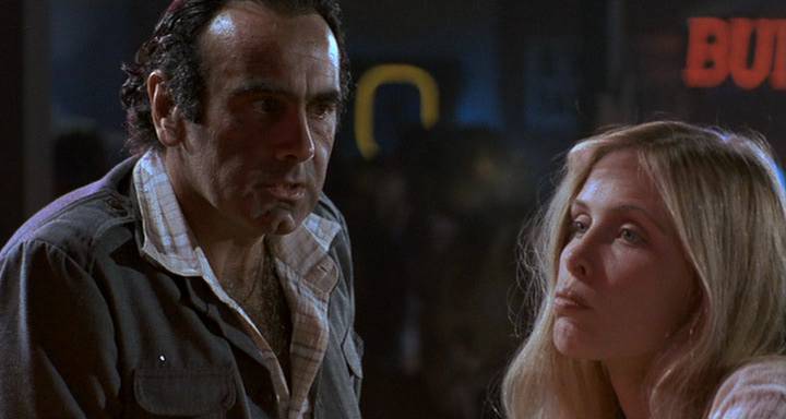 Le film s’ouvre sur un monologue du personnage de détective privé Losen Vesser, qui indique clairement de quoi traitera le film notamment sur cette phrase : Moi mon patelin c’est le Texas, et au Texas on rame chacun pour soi. On constate donc une critique de l’individualisme américain et cela se ressent tout d’abord par l’ambiance du film, situé dans une bourgade du Texas en pleine Amérique profonde donc, un espace chère aux frères Coen qui ne cesseront à travers leurs films d’analyser ces territoires. C’est au niveau ensuite des personnages que cela est le plus criant : ils affichent une misanthropie désolante incapable de communiquer entre eux, ne se faisant aucunement confiance et cela est plus frappant avec le couple formé par Ray interprété par John Getz et Abby interprété par Frances McDormand. Néanmoins et comme à chaque film des Coen, ces personnages affichent une certaine tendresse car ce sont ce qu’on pourrait appelé des losers magnifiques. Blood Simple, comme son nom l’indique est donc teinté de noirceur avec de grandes fulgurances de violences notamment incarné par le personnage de Vesser véritable monstre cynique qui représente toute la violence et aussi l’ironie qui traverse tout le film. Un personnage fondateur pour Joel et Ethan Coen car ils utiliseront dans certains films comme Fargo, Barton Fink, ou No Country For Old Man de nombreux monstres humains.