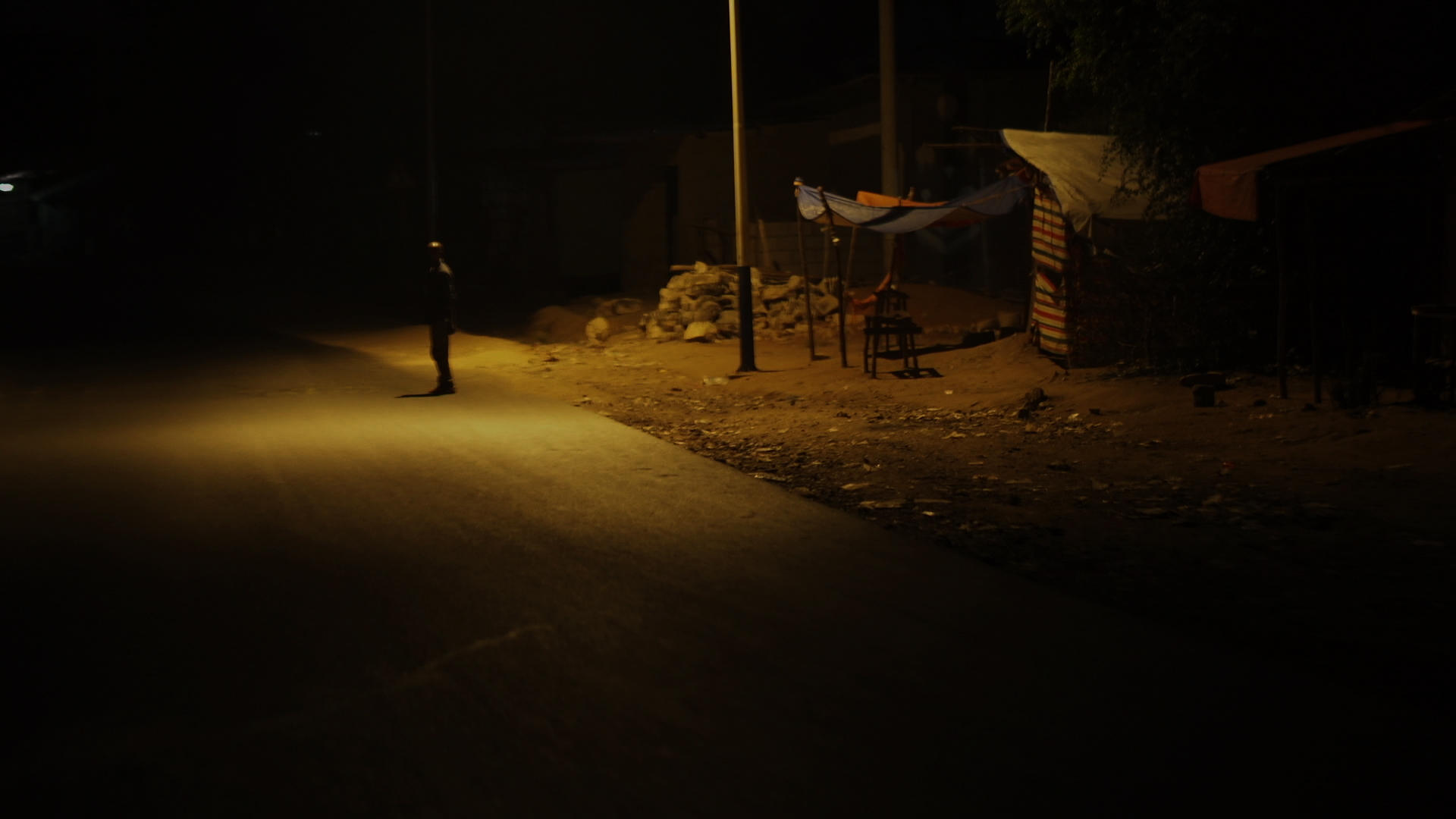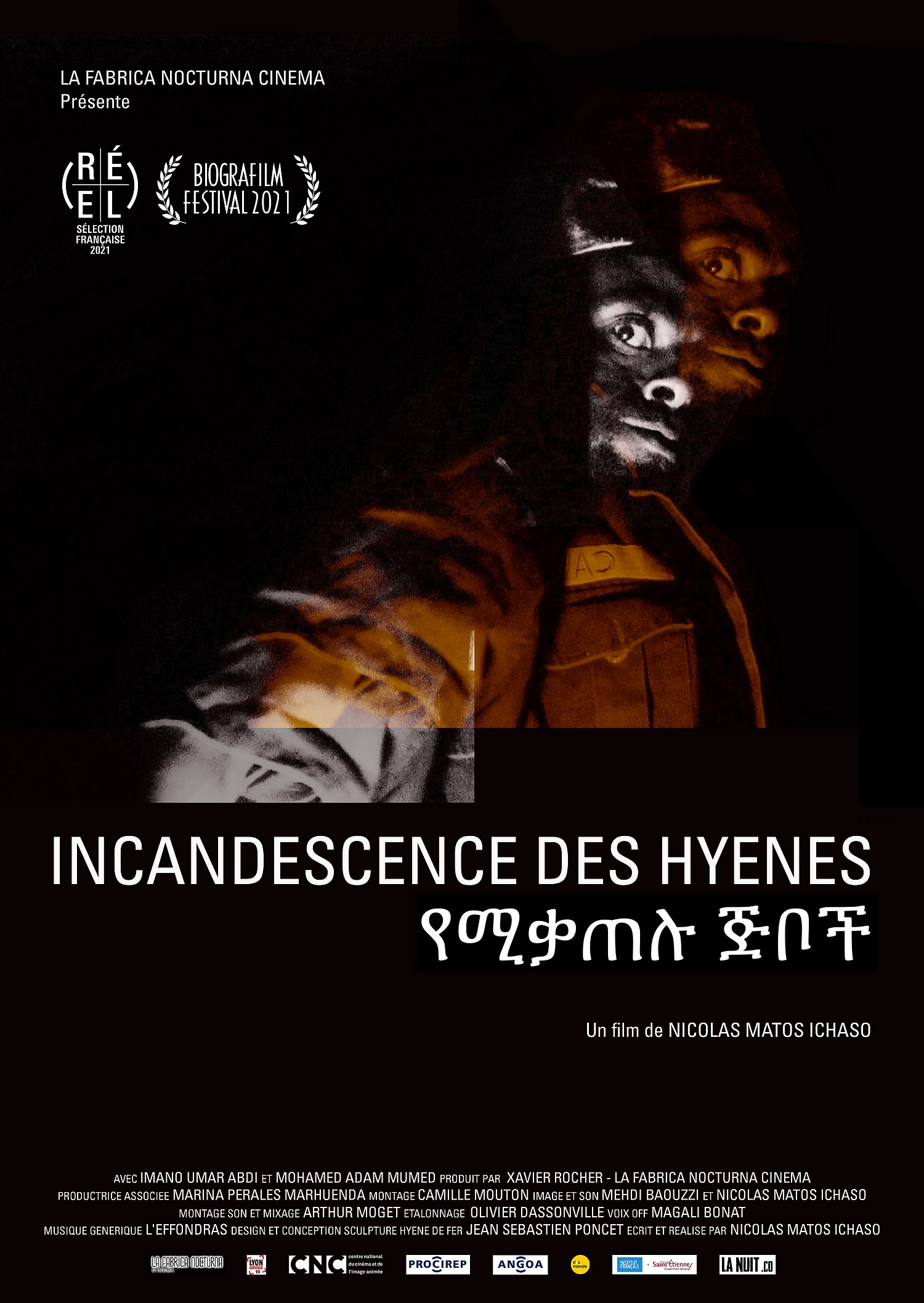 Passé un prélude diurne, Incandescence des hyènes se déploie intégralement au cœur de la nuit d’Harar, en Éthiopie. Dans la pénombre rougeoient des braises ; des forgerons y fourrent du métal pour mieux le façonner. Le film construit une symphonie sourde de couleurs et de sons, propres à ce moment de la ville et de la nature qui la borde. Le vert des feuilles de khât s’envole du marché pour aller éclabousser les murs de la case où elles sont consommées. L’éclairage des rues dédouble la figure du forgeron marcheur en silhouettes voisines. Le son des coups de marteaux se répand partout, mais lorsque l’on s’approche de l’atelier, c’est le vacarme du feu qui accapare l’esprit. Nicolas Matos Ichaso écoute le silence des forgerons et observe leurs gestes, selon une approche symboliste plutôt qu’anthropologique, qui en extrait des formes et des rythmes. Le travail est détaché de sa fonction, représenté comme un présent qui anime le corps, le tend, lui donne une cadence. Le khât psychotrope le leste et l’élève aussi, jusqu’à la transe. L’organisme lui-même est morcelé, séparation du tout qui lie chaque partie aux éléments qui l’entourent et à la lumière qui la modèle. Ainsi s’opère la jonction avec le mythe selon lequel les forgerons du cru se transforment en hyènes la nuit venue. L’atmosphère dans laquelle hommes et animaux baignent est si épaisse qu’elle convoque des glissements impromptus d’un règne à un autre. Des cris annoncent l’apparition des bêtes, et un poème en déploie la puissance mythique.