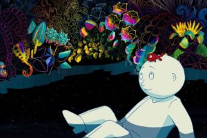 Jean de la Lune est l’adaptation du livre du même nom, écrit par Tomi Ungerer, grand maître de la littérature enfantine. Le réalisateur Stephan Schesch a donc collaboré avec ce dernier afin de conserver au maximum le ton du livre, tant dans la narration que dans le graphisme. Il en résulte un univers graphique très poétique, ponctué par des dessins entièrement faits à la main, et une palette de couleurs puisant dans le clair-obscur, mêlant à l’obscurité pourtant omniprésente de magnifiques couleurs chatoyantes. Le scénario a été étoffé par le réalisateur et Tomi Ungerer lui même : nous découvrons donc de nouveaux personnages, comme la petite fille du drive (qui apparaissait déjà en arrière plan dans le livre) ou le président du Monde.