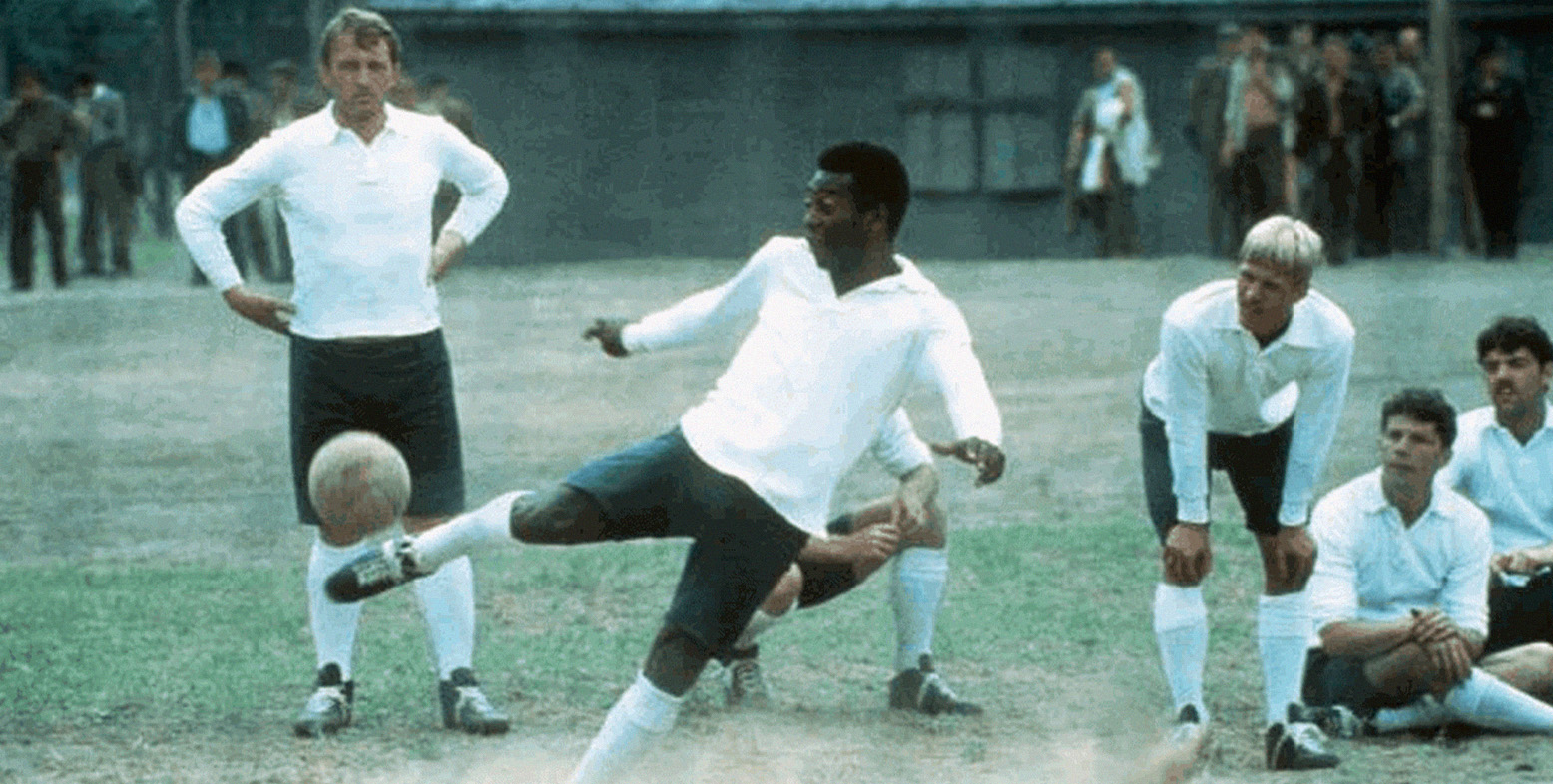 Allemagne, 1943. Une poignée de prisonniers alliés se prépare à disputer un match de foot, en France, contre une équipe du Reich. L’occasion pour les joueurs (certains interprétés par de solides internationaux, Pelé en tête) de tenter une évasion massive. Loin de tout réalisme, Huston, en vieux briscard, s’offre une fantaisie assumée, à voir pour Stallone en Américain frimeur, et le casting hétéroclite, de Michael Caine à Jean-François Stévenin.
