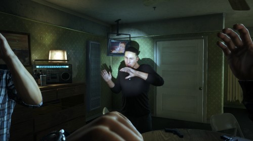 Les boucles récursives d’ersatz de conversations, les effets de réalité mixte et les réflexions sur la réalité et la simulation, la performance et la violence, l’identité et la politique rendent RECKONING 4 particulièrement intrigant. Les juxtapositions inattendues produisent des aperçus étonnants, voire dérangeants, toujours éclairants. Alors que RECKONING 3 se concentre sur le dialogue intermédiaire entre le cinéma et les jeux vidéo, RECKONING 4 s’intéresse principalement aux paradoxes communicatifs de la simulation, et plus particulièrement au cul-de-sac de l’information incessante. Les personnages de Lambert vivent dans un monde saturé de médias qui ne laisse aucune place à l’autonomie. La créativité cède la place à une liberté simulée. L’artiste est particulièrement fasciné par le « regard des médias », la façon dont les différentes technologies structurent le régime scopique. Les personnages – humains ou numériques – se regardent de manière obsessionnelle sans vraiment voir quoi que ce soit ou qui que ce soit. De même, ils se parlent, ou plutôt, font semblant. Les mots sont réduits à de simples énoncés. Dans la dystopie mondaine de Lambert, il n’y a pas de distinction ontologique entre réalité et simulation : les deux forment un amalgame diabolique dans lequel la violence, l’agression et le harcèlement – à la fois symbolique et « physique » – sont normatifs. Il n’y a pas de réalité en dehors de la matrice. La simulation est transparente et totalisante.