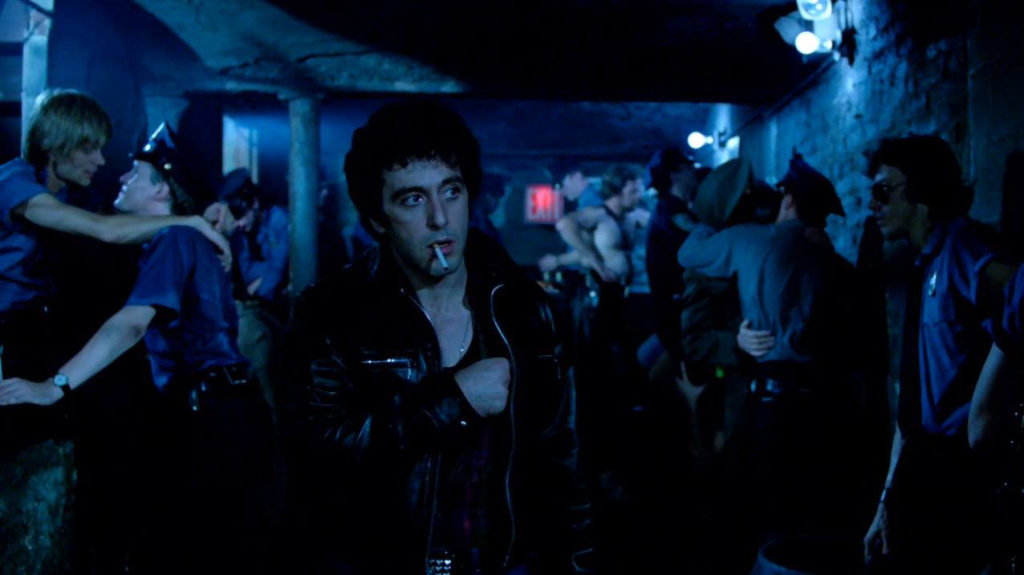 Il y a quelque chose d’indiscernable dans ce personnage, un point aveugle. Le rapprochement entre la figure du supérieur qui le charge de l’enquête et celle de son père (absent) avec lequel il semble y avoir un malaise, ajoutés aux moments rares en compagnie de son amie, distillent une ambiguïté qui fait écho aux scènes de dragues auxquelles il doit se soumettre au fil de son enquête. On ne sait s’il est rebuté ou séduit par ce qu’il arpente et découvre. L’enquête n’est qu’une excuse, ce que cherche à montrer le cinéaste c’est ce qui s’infiltre dans l’esprit du personnage : le doute, l’attirance pour des pulsions intimes sous-jacentes dont il ignorait tout, un basculement, un voyage intérieur terrifiant. Dans ce rôle Al Pacino est hallucinant et halluciné avec un jeu minimaliste donnant l’impression qu’il improvise continuellement, comme dans la scène de danse avec son accélération progressive, métaphore d’un basculement dionysiaque, exutoire d’un refoulement ou fureur contrôlée ?