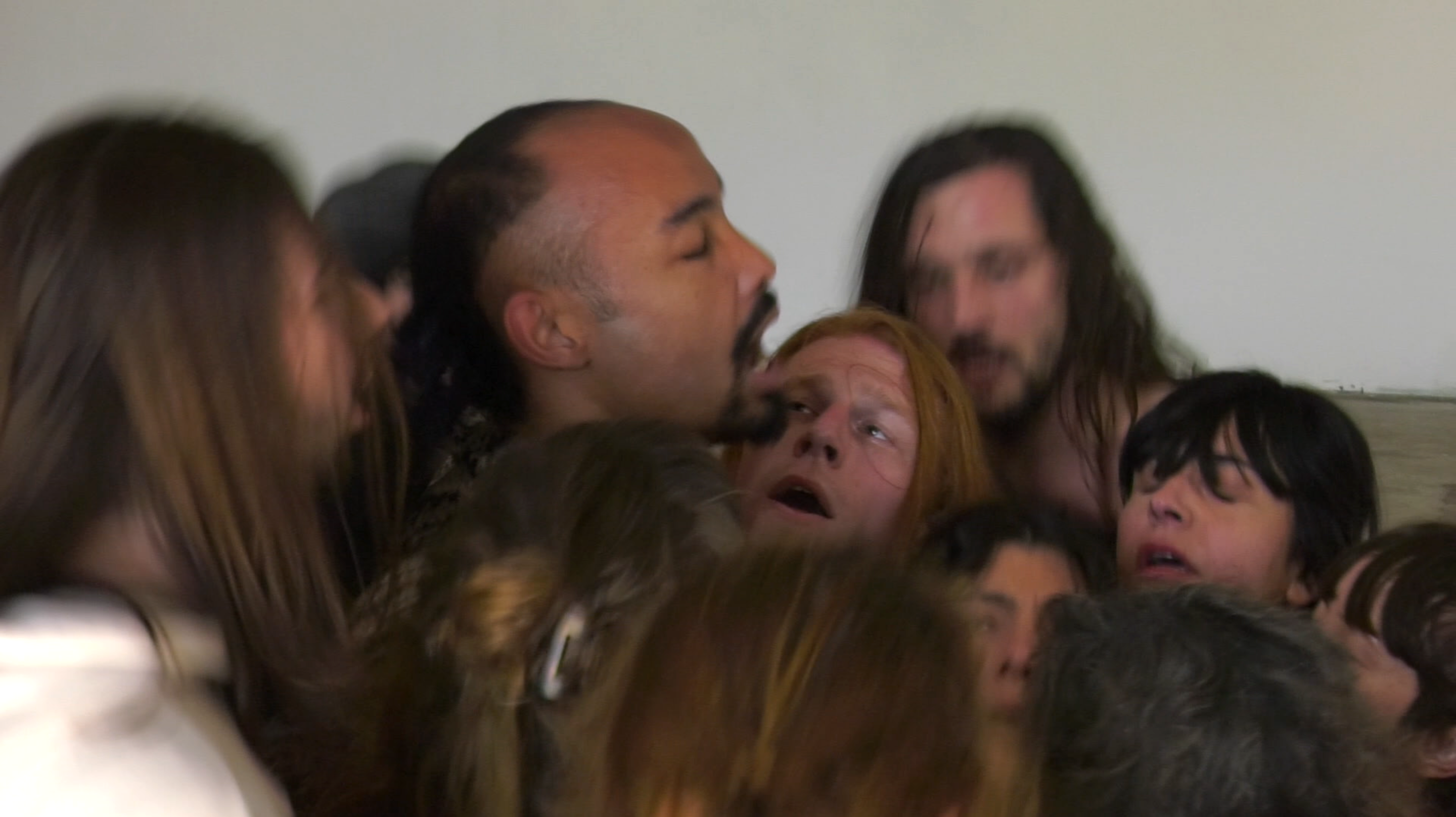 Au départ, ce sont des stages de jeu à la caméra proposés par Les Ateliers Cinéma et dirigés par la réalisatrice Émilie Aussel, elle-même entourée de plusieurs intervenant.e.s : musicien.ne, chorégraphe, chef opérateur.ice son et image etc. Comment créer un espace de lâcher-prise, de transe, de soulèvement collectif mais aussi comment adresser son intériorité, ses sentiments face à une caméra ? Une formation hors norme, où les participant.es ont ensemble traversé des états émotionnels forts, en complète immersion musicale, jouant ensemble de la combinaison du trivial et du sacré, de l’individu et du collectif.